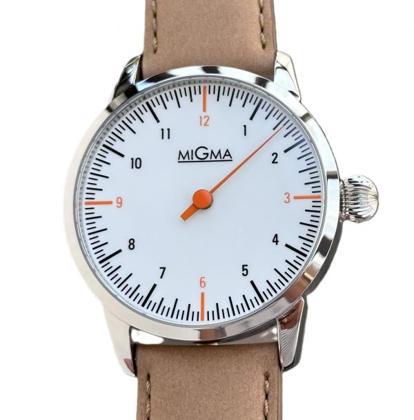 One Hand? – Das Besondere dieser Uhr ist, dass es nur einen Stundenzeiger gibt. Die Zeit wird durch die Striche auf dem Zifferblatt dennoch ziemlich genau ablesbar (5 Minuten Einteilung). Für alle die im hektischen Alltag eine Uhr suchen, welche es mit den Sekunden nicht so genau nimmt. Farblich modern interpretiert und mit hochwertigen Komponenten in Deutschland gefertigt.